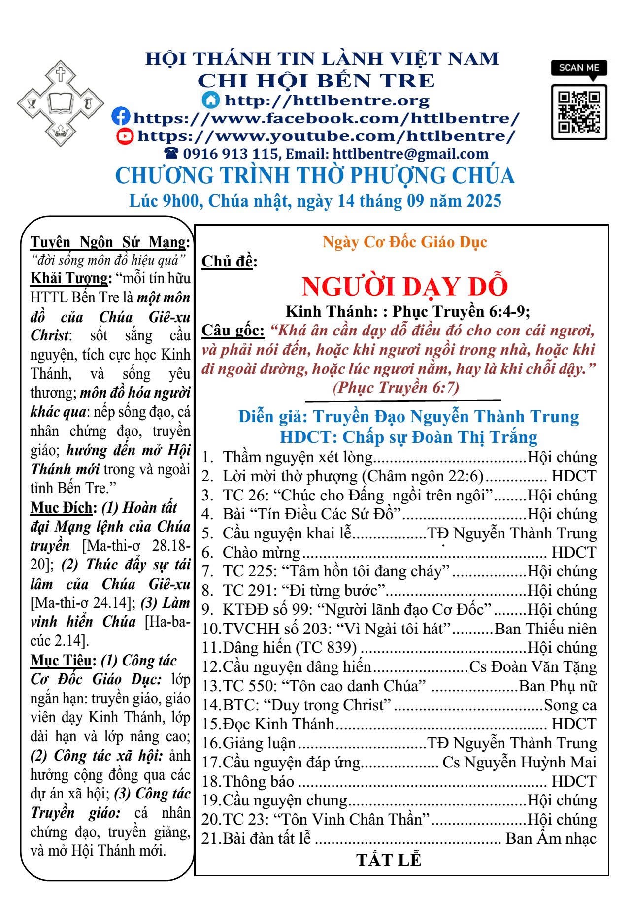 CHƯƠNG TRÌNH THỜ PHƯỢNG CHÚA (14/9/25)