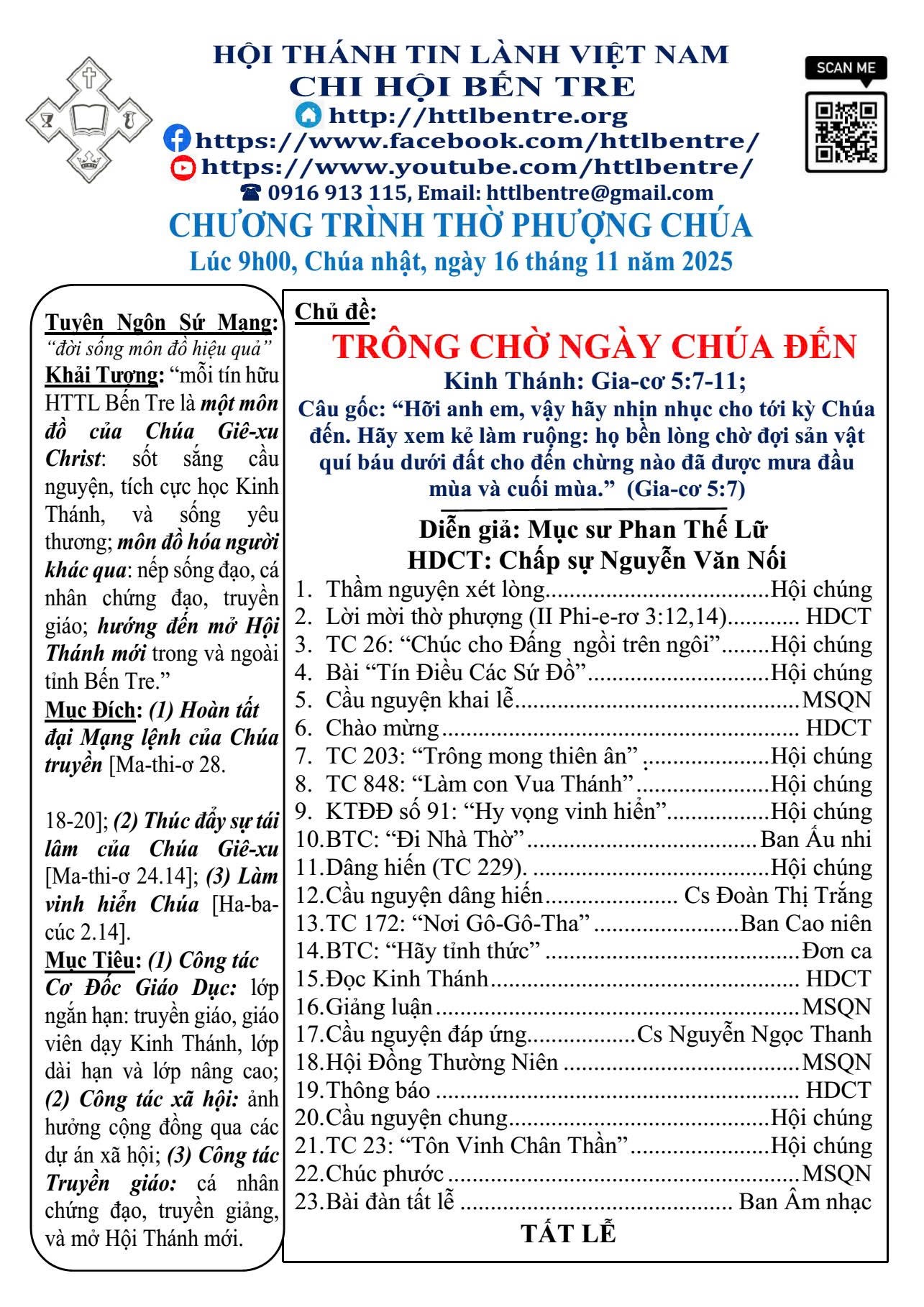 CHƯƠNG TRÌNH THỜ PHƯỢNG CHÚA (16/11/25)
