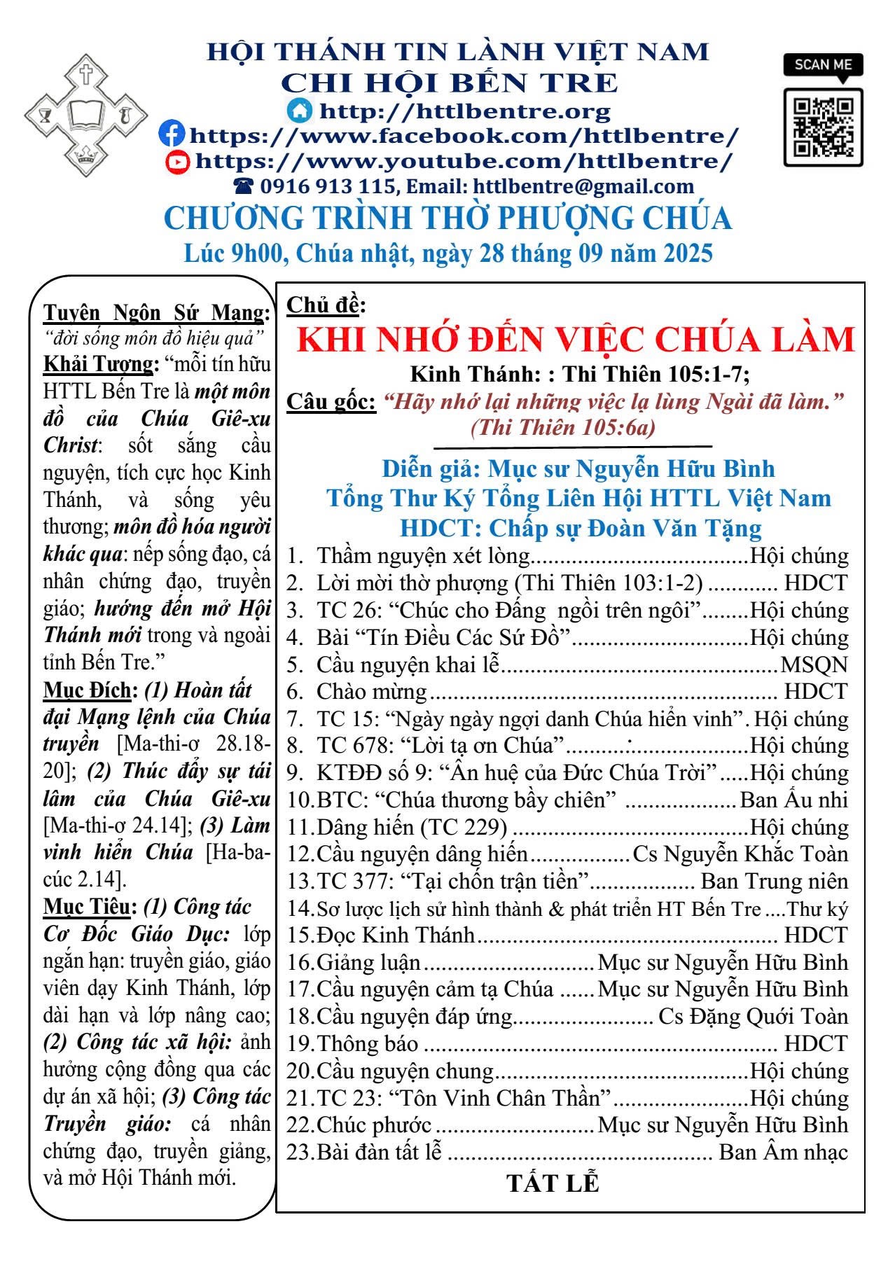 CHƯƠNG TRÌNH THỜ PHƯỢNG CHÚA-28/9/25