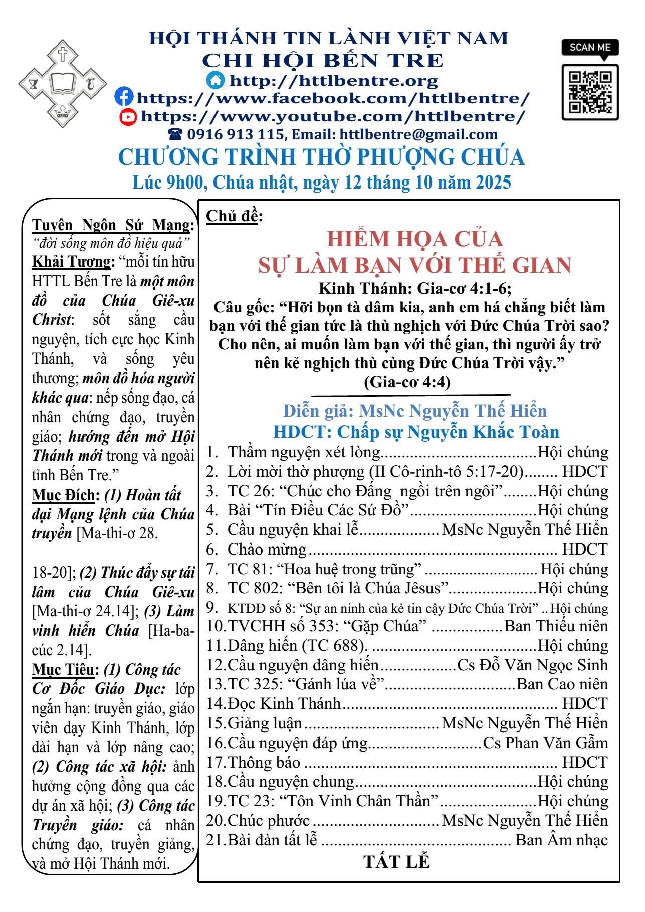 CHƯƠNG TRÌNH THỜ PHƯỢNG CHÚA (CN-12/10/25)