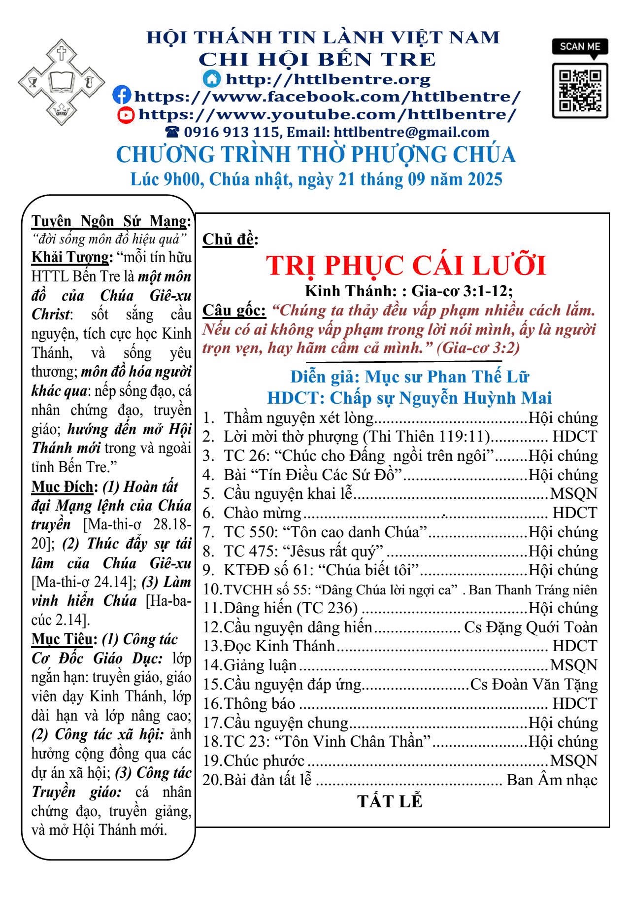 CHƯƠNG TRÌNH THỜ PHƯỢNG CHÚA (14/9/25)