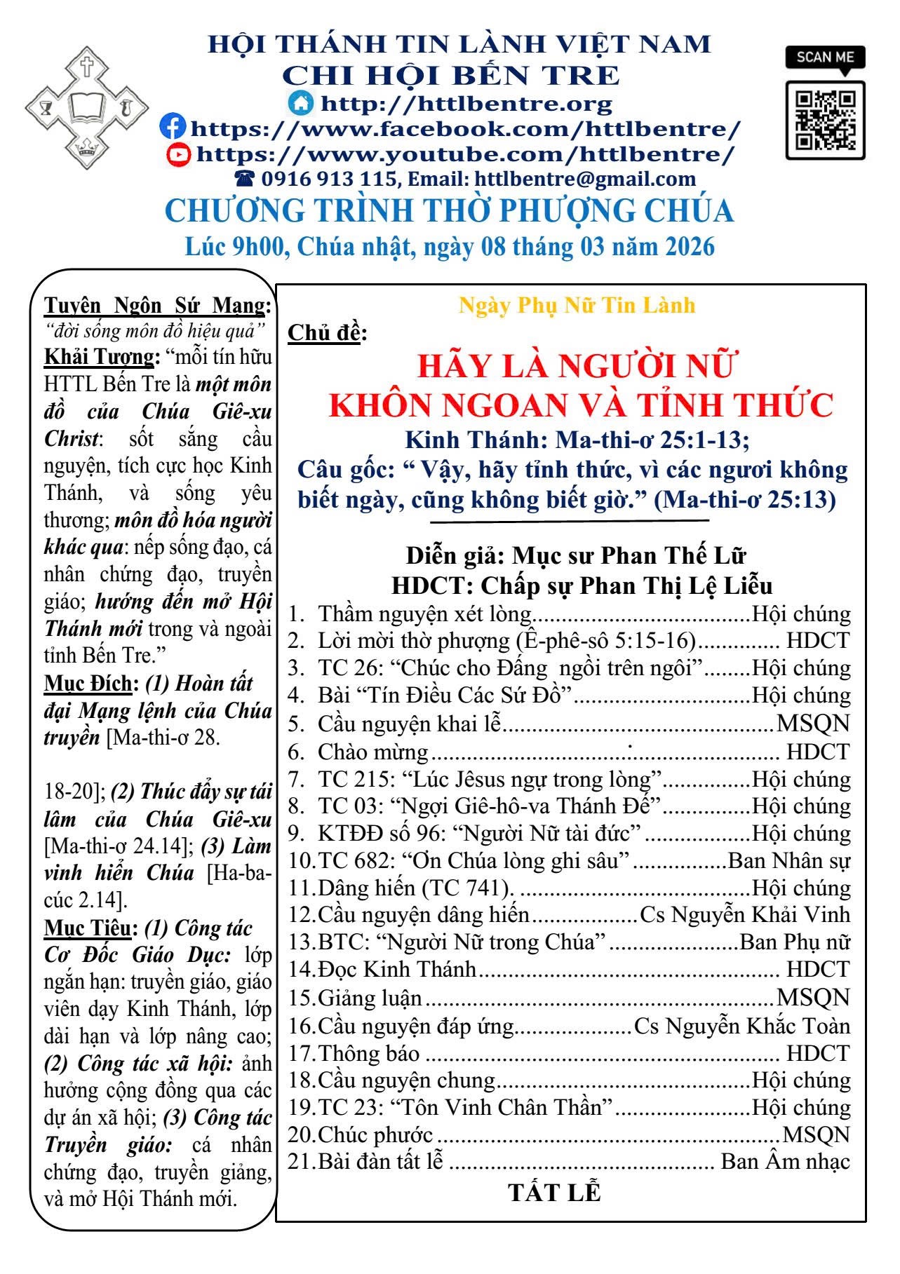 CHƯƠNG TRÌNH THỜ PHƯỢNG CHÚA(8/3/26)